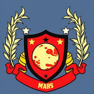 На гербе МДГС также присутствуют символы коммунизма — пятиконечные звёзды и красный цвет (который также символизирует Марс). В самом центе изображена сама планета. Кроме того, герб украшает надпись "Mars" и листья марсианской травы.