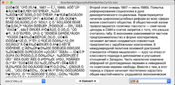 - Романо-германский мутант. Тот самый Привет. Возникает, когда однобайтовую кодировку (CP1251, KOI8-R) пытаются интерпретировать как многобайтовую (UTF-8). Каждый байт русского текста воспринимается как отдельный символ из таблицы Unicode, обычно из области латиницы с диакритическими знаками (умлауты, акуты и прочие тильды). Выглядит как попытка пьяного немца написать что-то по-польски.